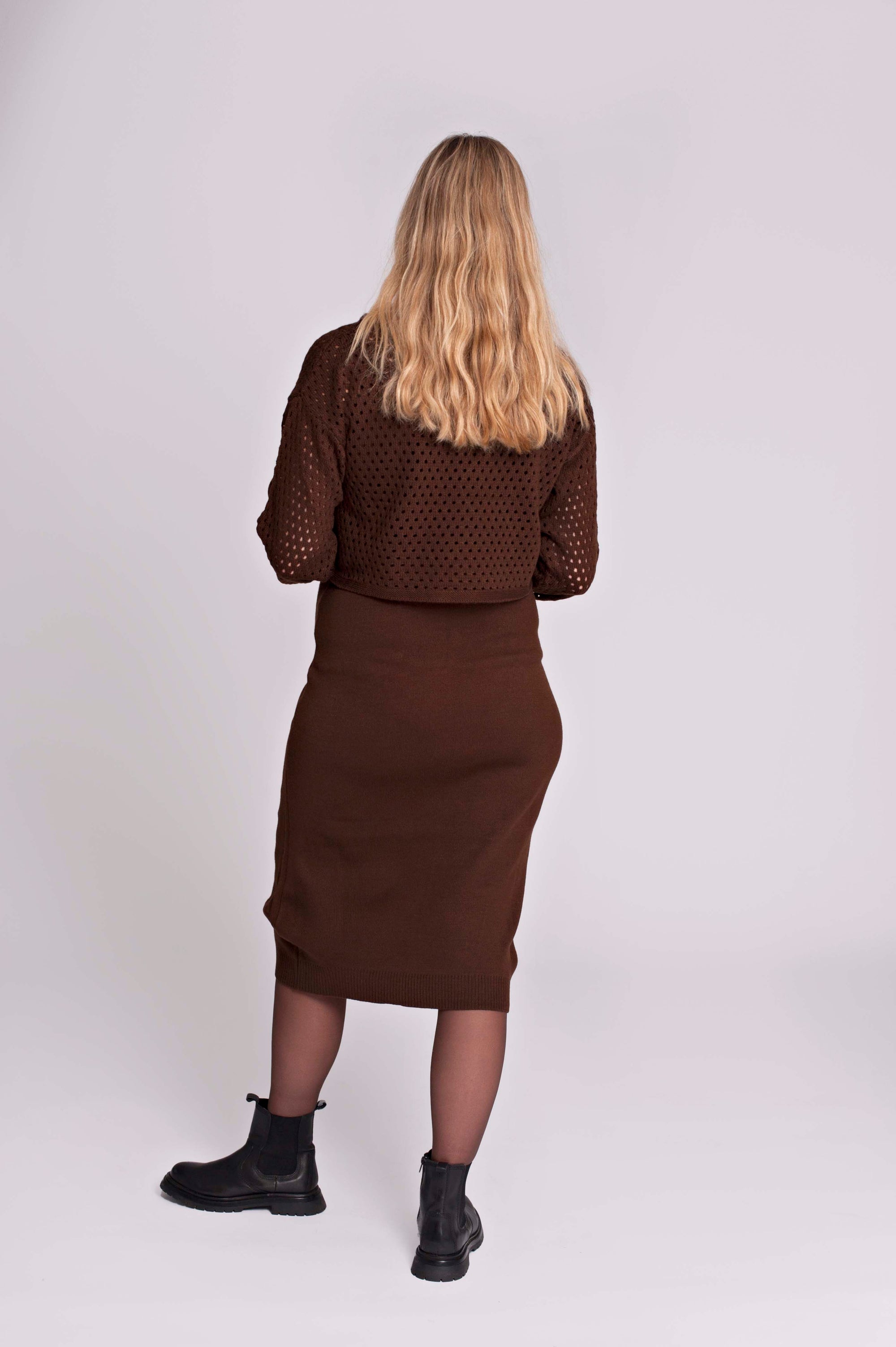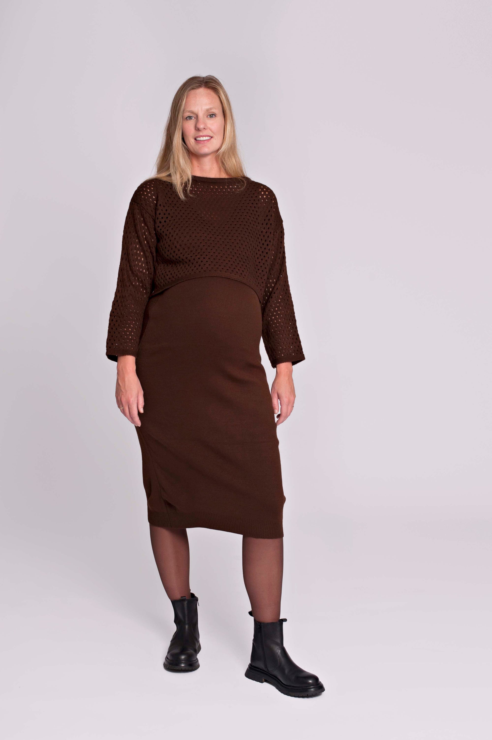 Kleid Strickgürtel Lange Ärmel | Burgund