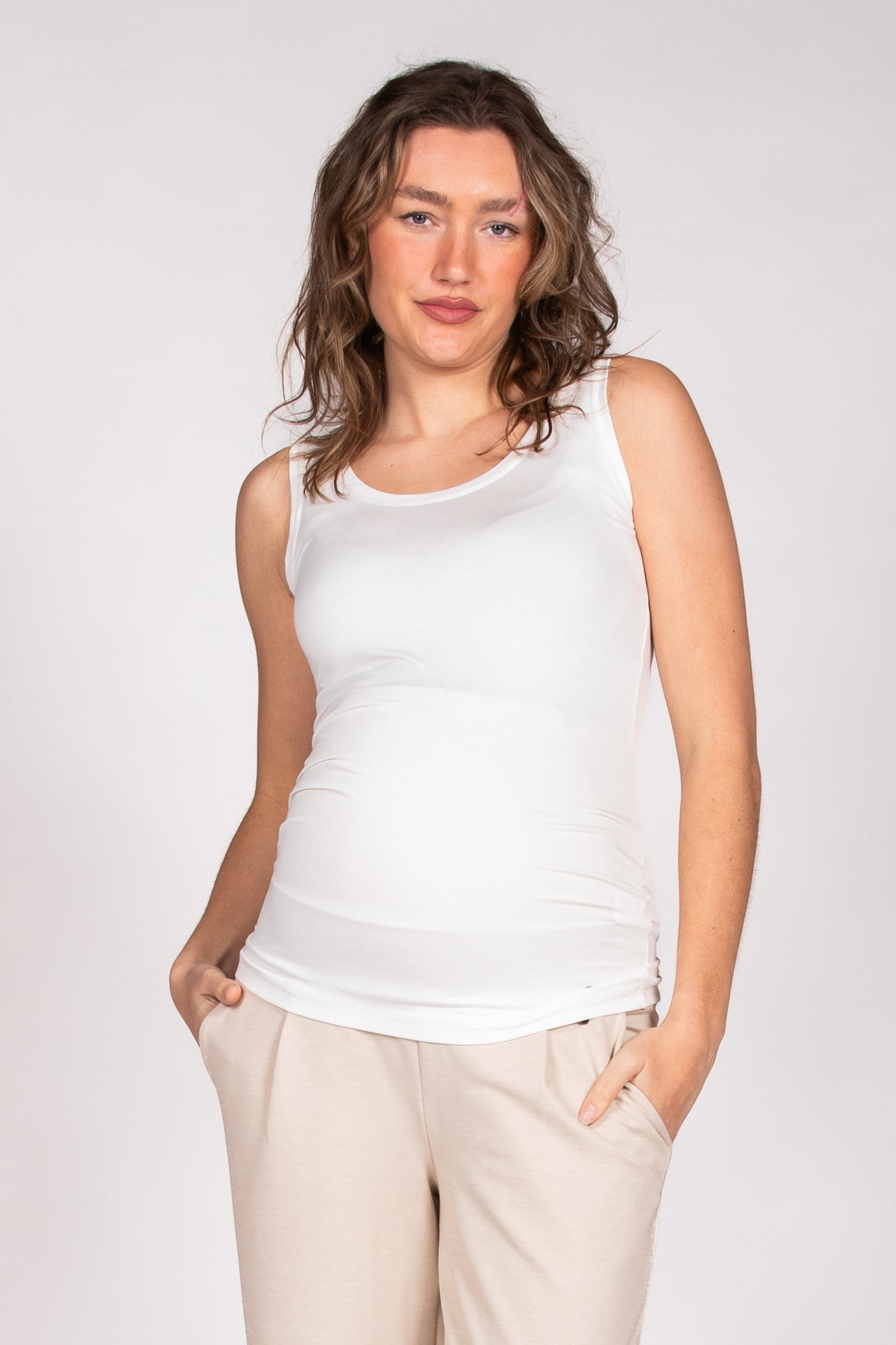 Stilltop Ärmellos Plissiert EcoVero | Off White