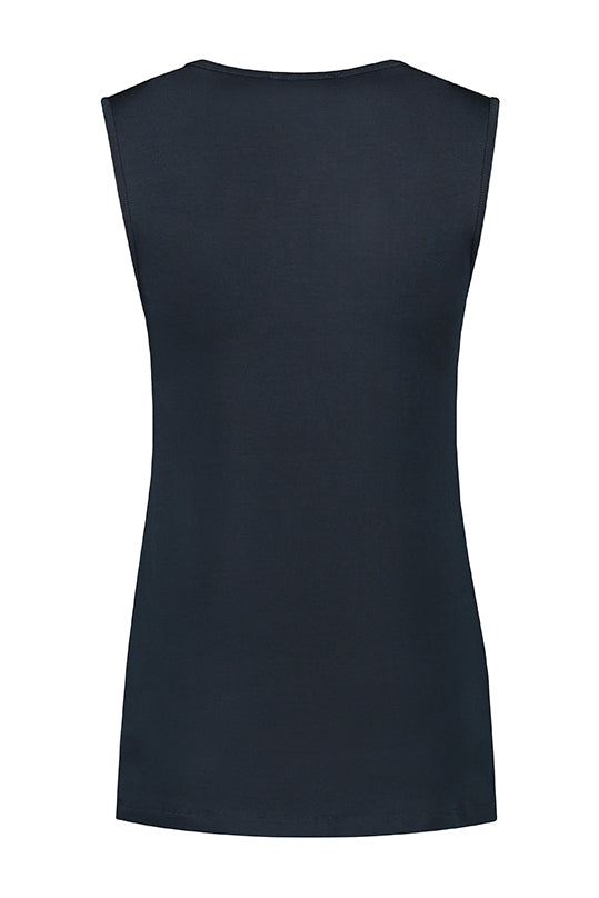 Stilltop Ärmellos Plissiert EcoVero | Marineblau