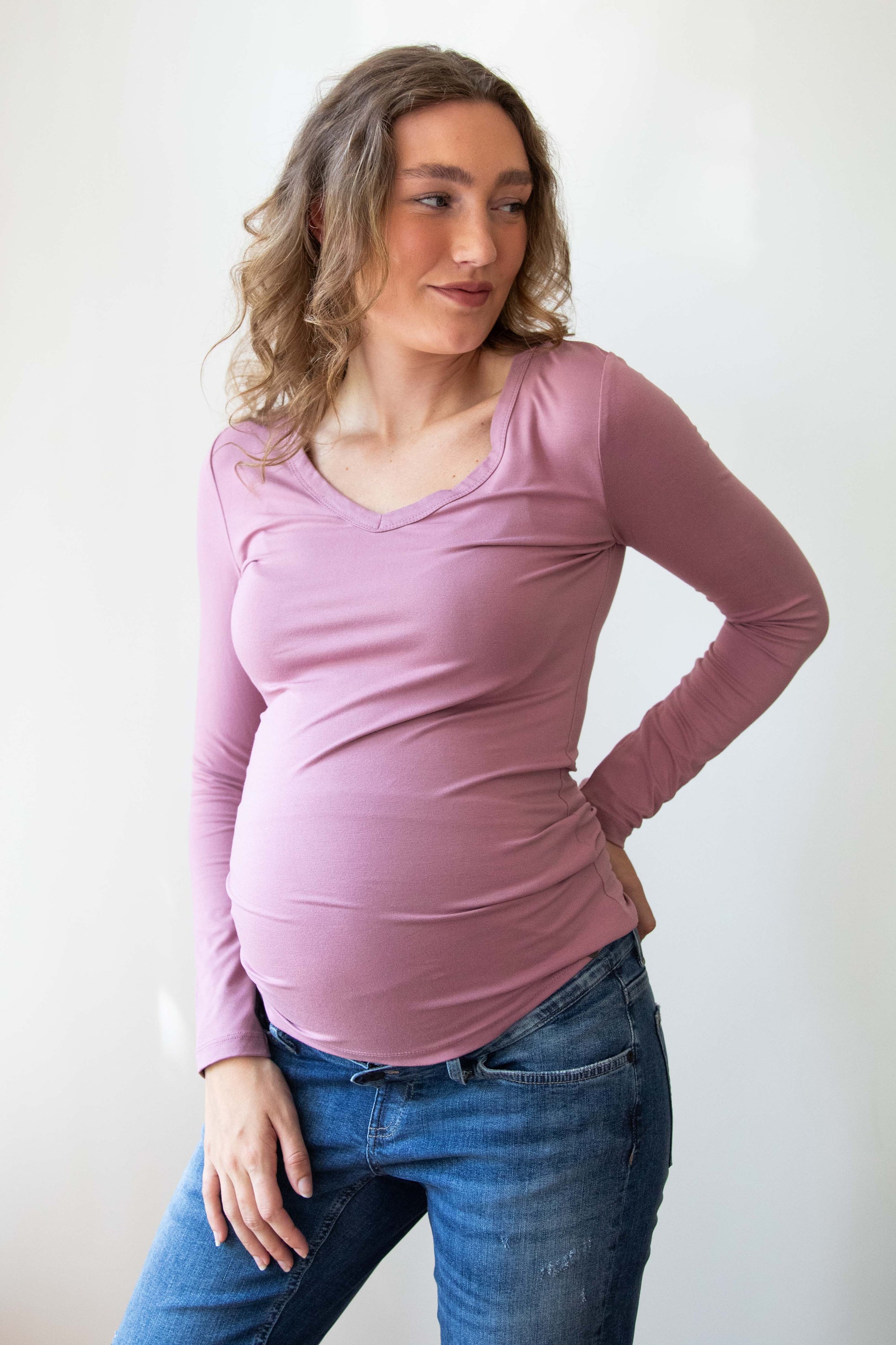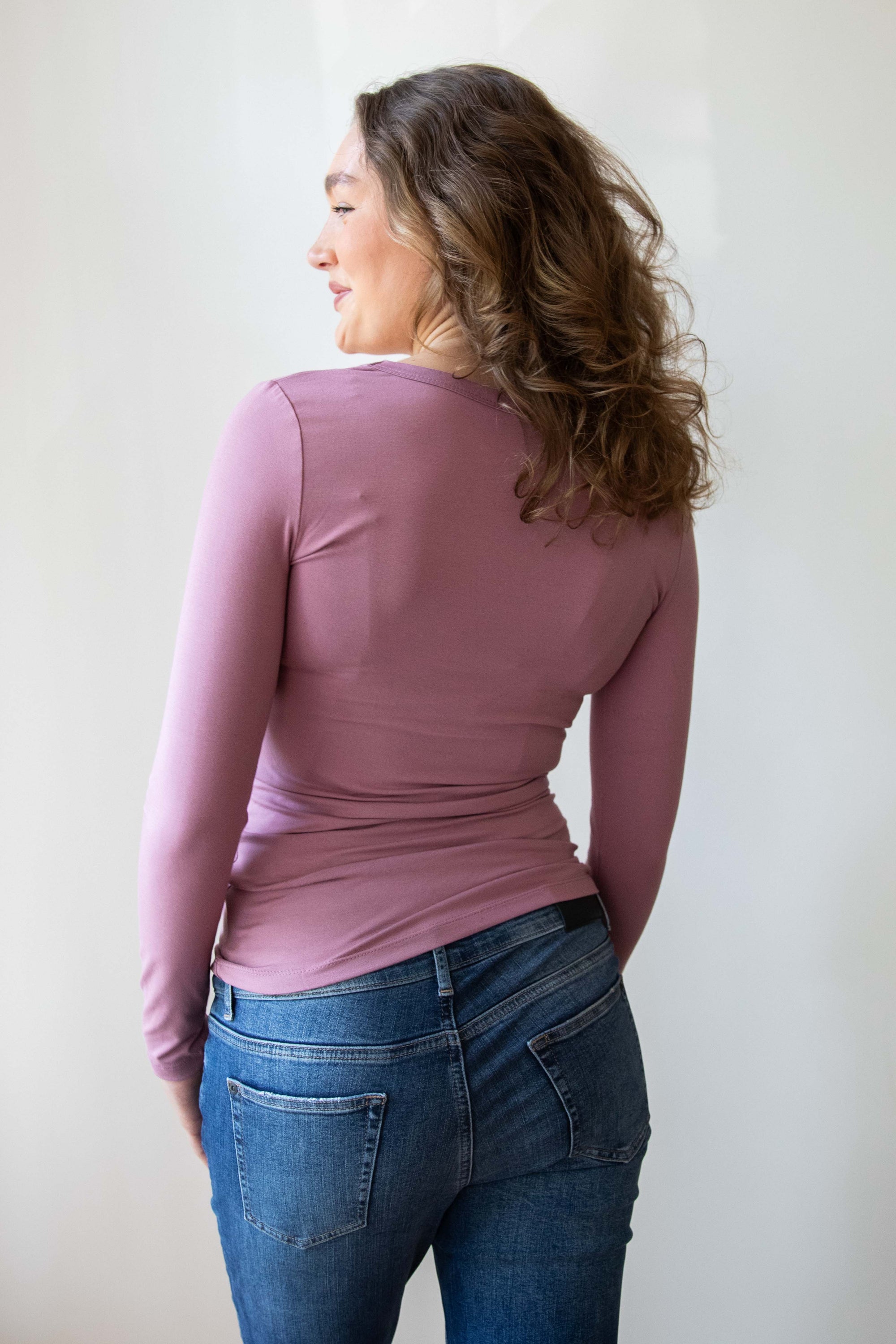 Hemd V-Ausschnitt l.sl Ecovero | Pflaume