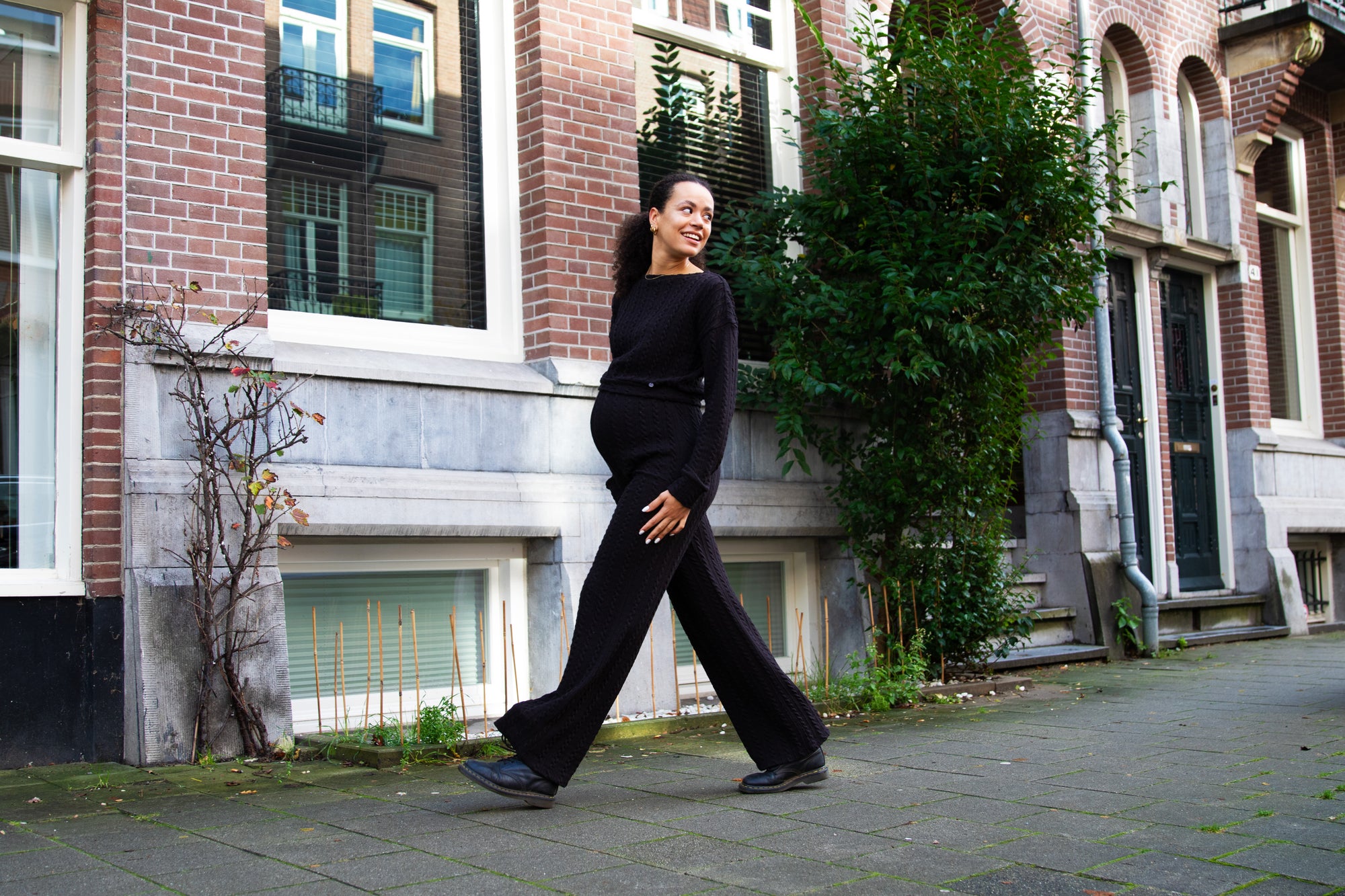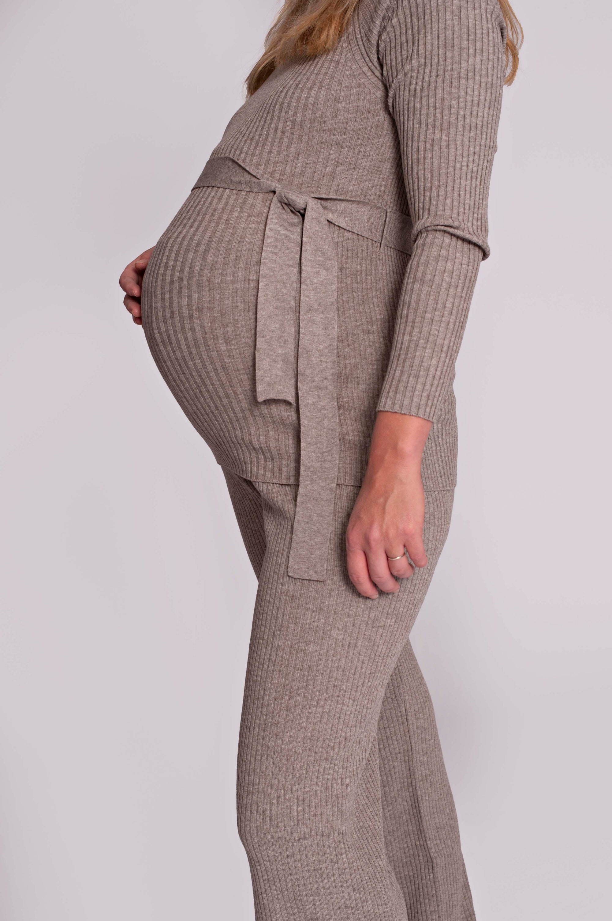 Kleid Strickgürtel Lange Ärmel | Burgund